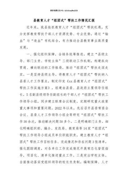 【七哥公文】2025年:【七哥公文】县教育人才“组团式”帮扶工作情况汇报+更多免费公文+VX:QiGeGongWen2024+更多免费公文+VX:QiGeGongWen2024