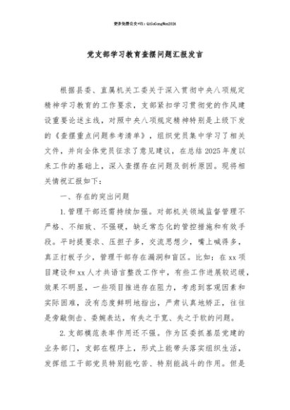 【七哥公文】2025年:【七哥公文】党支部学习教育查摆问题汇报发言+更多免费公文+VX:QiGeGongWen2024+更多免费公文+VX:QiGeGongWen2024