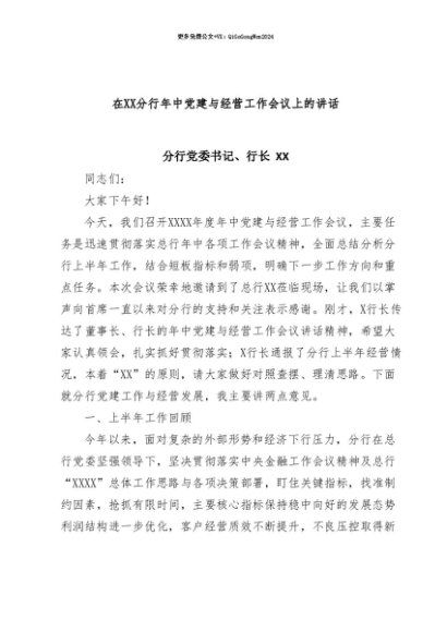 【七哥公文】2025年:【七哥公文】在分行2024年年中党建与经营工作会议上的讲话V7+更多免费公文+VX:QiGeGongWen2024+更多免费公文+VX:QiGeGongWen2024