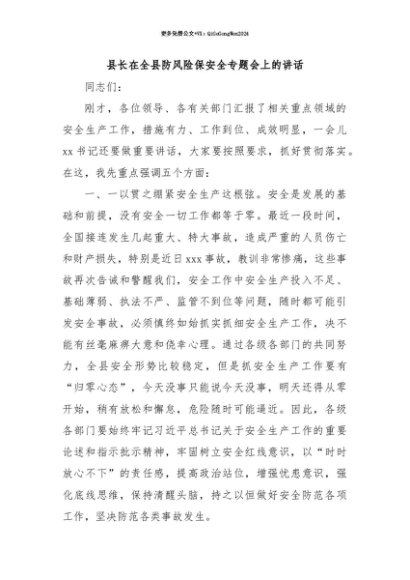【七哥公文】2025年:【七哥公文】县长在全县防风险保安全专题会上的讲话+更多免费公文+VX:QiGeGongWen2024+更多免费公文+VX:QiGeGongWen2024