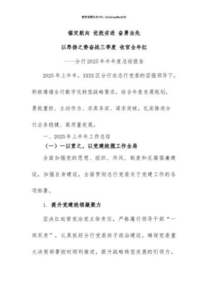 【七哥公文】2025年:【七哥公文】分行2025上半年经营工作总结+更多免费公文+VX:QiGeGongWen2024+更多免费公文+VX:QiGeGongWen2024