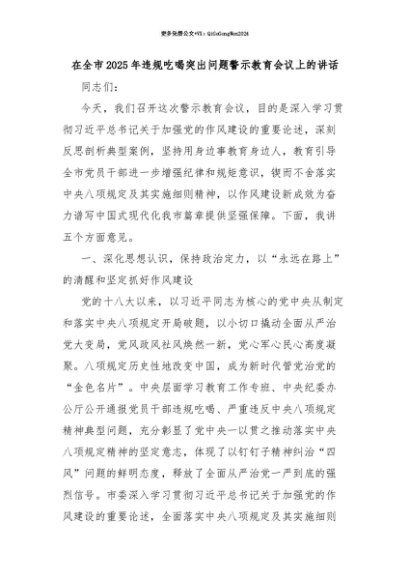 【七哥公文】2025年:【七哥公文】在全市2025年违规吃喝突出问题警示教育会议上的讲话+更多免费公文+VX:QiGeGongWen2024+更多免费公文+VX:QiGeGongWen2024