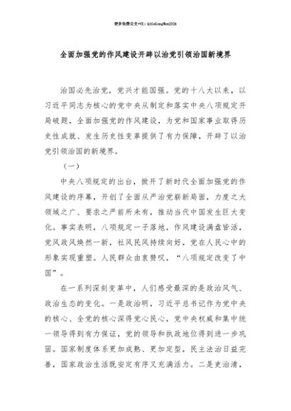 【七哥公文】2025年:【七哥公文】全面加强党的作风建设开辟以治党引领治国新境界+更多免费公文+VX:QiGeGongWen2024+更多免费公文+VX:QiGeGongWen2024