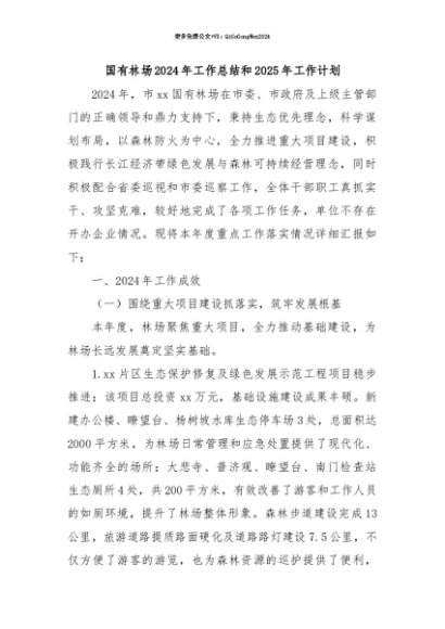 【七哥公文】2025年:【七哥公文】国有林场2024年工作总结和2025年工作计划+更多免费公文+VX:QiGeGongWen2024+更多免费公文+VX:QiGeGongWen2024