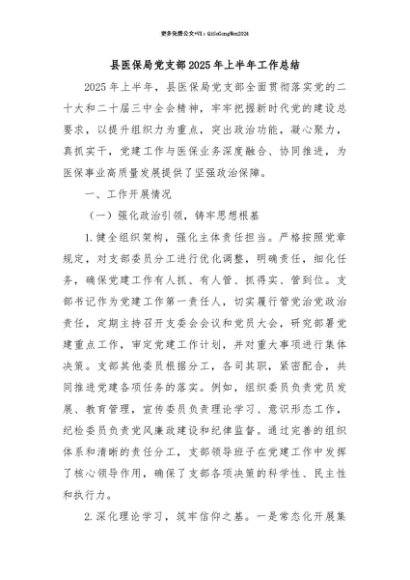 【七哥公文】2025年:【七哥公文】县医保局党支部2025年上半年工作总结+更多免费公文+VX:QiGeGongWen2024+更多免费公文+VX:QiGeGongWen2024