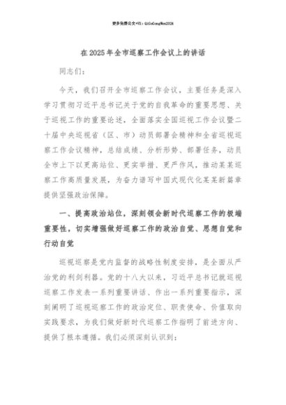 【七哥公文】2025年:【七哥公文】在2025年全市巡察工作会议上的讲话+更多免费公文+VX:QiGeGongWen2024+更多免费公文+VX:QiGeGongWen2024