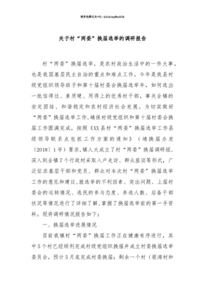 【七哥公文】2025年:【七哥公文】关于村“两委”换届选举的调研报告+更多免费公文+VX:QiGeGongWen2024+更多免费公文+VX:QiGeGongWen2024