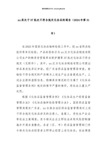 【七哥公文】2025年:【七哥公文】xx局关于37批次不符合规定化妆品的通告(2024年第31号)+更多免费公文+VX:QiGeGongWen2024+更多免费公文+VX:QiGeGongWen2024