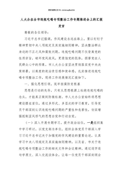【七哥公文】2025年:【七哥公文】人大办在全市违规吃喝专项整治工作专题推进会上的汇报发言+更多免费公文+VX:QiGeGongWen2024+更多免费公文+VX:QiGeGongWen2024