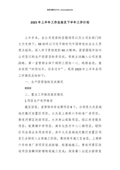 【七哥公文】2025年:【七哥公文】2025年上半年工作总结及下半年工作计划+更多免费公文+VX:QiGeGongWen2024+更多免费公文+VX:QiGeGongWen2024