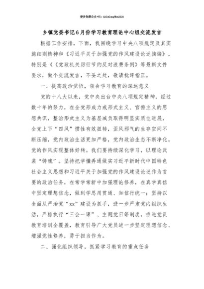 【七哥公文】2025年:【七哥公文】乡镇党委书记6月份学习教育理论中心组交流发言+更多免费公文+VX:QiGeGongWen2024+更多免费公文+VX:QiGeGongWen2024