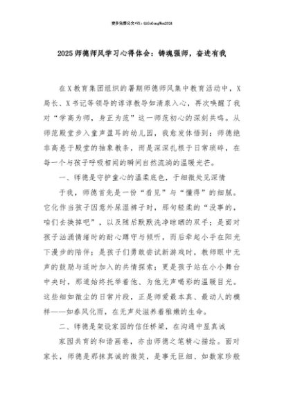 【七哥公文】2025年:【七哥公文】2025师德师风学习心得体会:铸魂强师,奋进有我+更多免费公文+VX:QiGeGongWen2024+更多免费公文+VX:QiGeGongWen2024