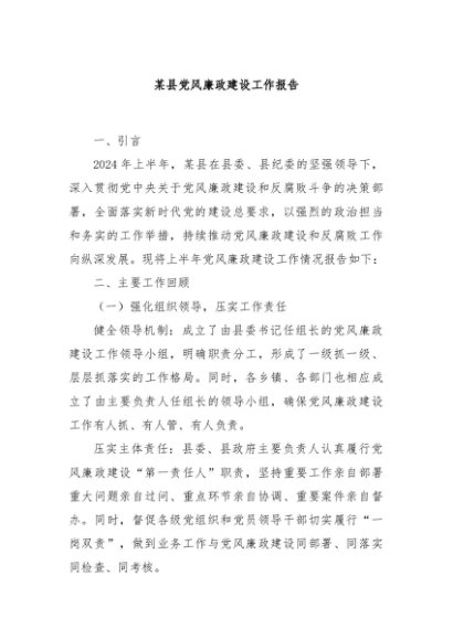 / 【七哥公文】2024年:某县党风廉政建设工作报告+更多免费公文+VX:QiGeGongWen2024