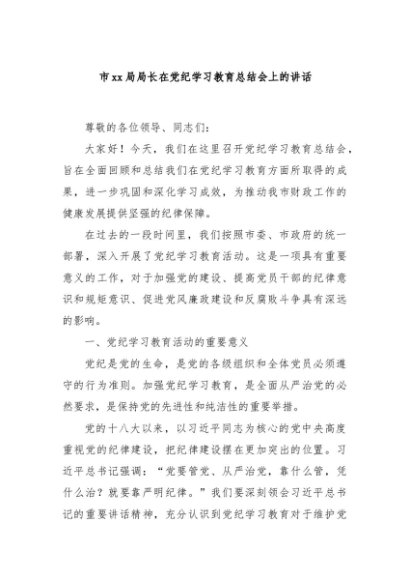 / 【七哥公文】2024年:市xx局局长在党纪学习教育总结会上的讲话+更多免费公文+VX:QiGeGongWen2024