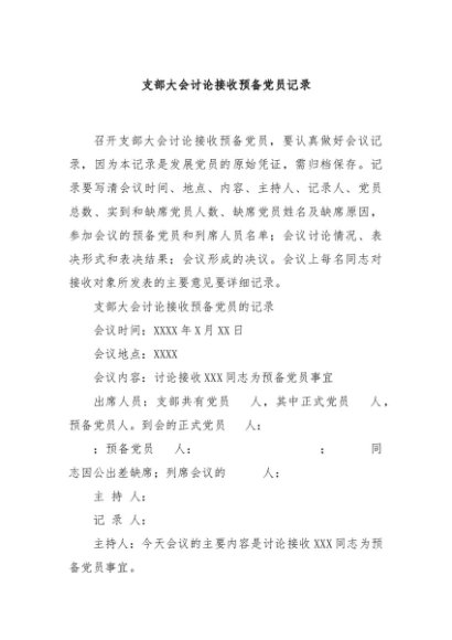 / 【七哥公文】2024年:支部大会讨论接收预备党员记录+更多免费公文+VX:QiGeGongWen2024
