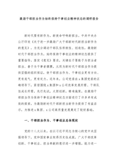【七哥公文】2024年:激励干部担当作为始终保持干事创业精神状态的调研报告+更多免费公文+VX:QiGeGongWen2024