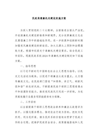 / 【七哥公文】2024年:民政局清廉机关建设实施方案+更多免费公文+VX:QiGeGongWen2024