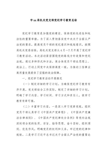 / 【七哥公文】2024年:市xx局机关党支部党纪学习教育总结+更多免费公文+VX:QiGeGongWen2024