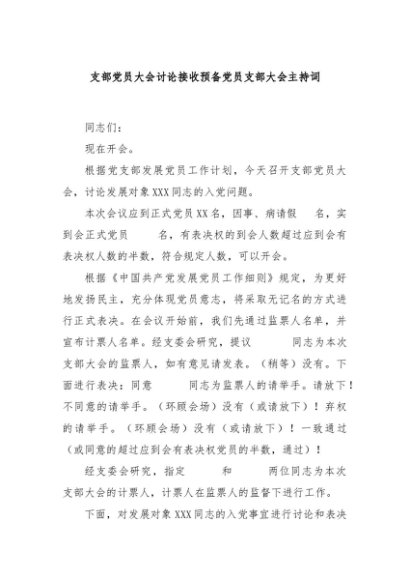 / 【七哥公文】2024年:支部党员大会讨论接收预备党员支部大会主持词+更多免费公文+VX:QiGeGongWen2024
