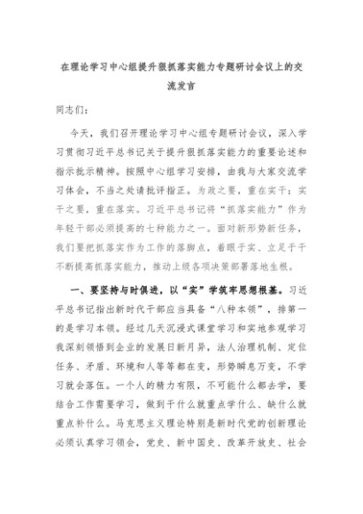 【七哥公文】2024年:在理论学习中心组提升狠抓落实能力专题研讨会议上的交流发言+更多免费公文+VX:QiGeGongWen2024