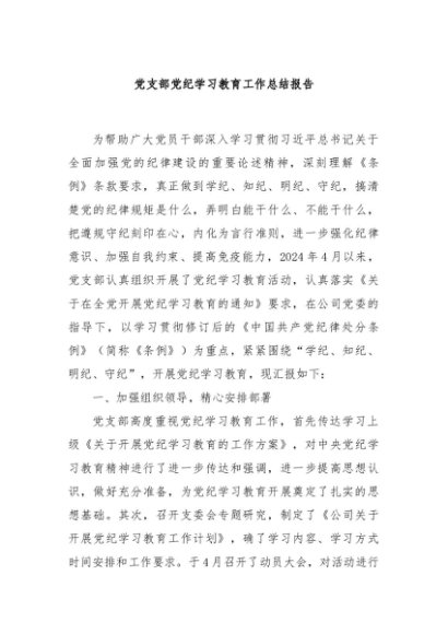 / 【七哥公文】2024年:党支部党纪学习教育工作总结报告+更多免费公文+VX:QiGeGongWen2024