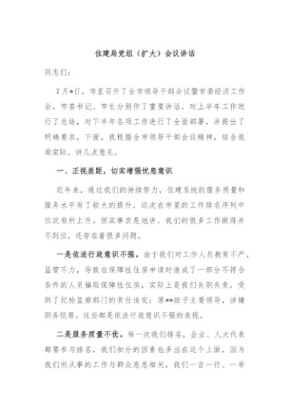 / 【七哥公文】2024年:住建局党组(扩大)会议讲话+更多免费公文+VX:QiGeGongWen2024