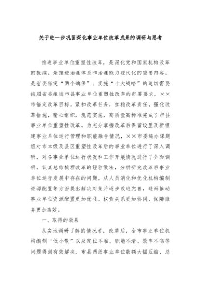 / 【七哥公文】2024年:关于进一步巩固深化事业单位改革成果的调研与思考+更多免费公文+VX:QiGeGongWen2024