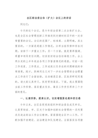 / 【七哥公文】2024年:在区综治委全体(扩大)会议上的讲话+更多免费公文+VX:QiGeGongWen2024