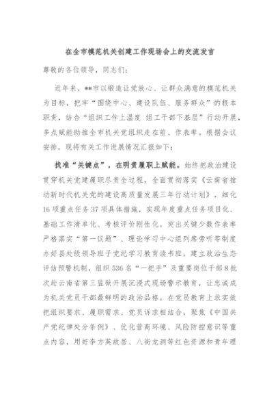 / 【七哥公文】2024年:在全市模范机关创建工作现场会上的交流发言+更多免费公文+VX:QiGeGongWen2024