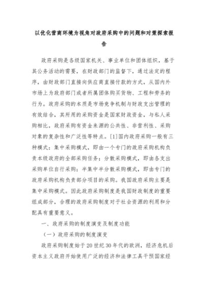 【七哥公文】2024年:以优化营商环境为视角对政府采购中的问题和对策探索报告+更多免费公文+VX:QiGeGongWen2024