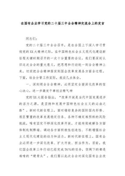 【七哥公文】2024年:在国有企业学习党的二十届三中全会精神交流会上的发言+更多免费公文+VX:QiGeGongWen2024