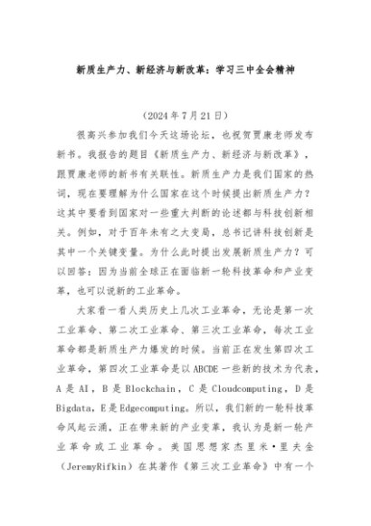 【七哥公文】2024年:新质生产力、新经济与新改革:学习三中全会精神+更多免费公文+VX:QiGeGongWen2024