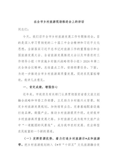 / 【七哥公文】2024年:在全市乡村旅游现场推进会上的讲话+更多免费公文+VX:QiGeGongWen2024