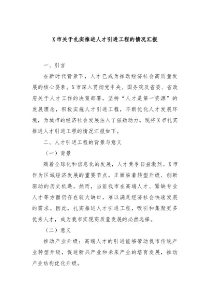 / 【七哥公文】2024年:X市关于扎实推进人才引进工程的情况汇报+更多免费公文+VX:QiGeGongWen2024
