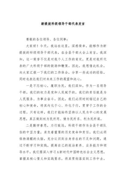 / 【七哥公文】2024年:新提拔科级领导干部代表发言+更多免费公文+VX:QiGeGongWen2024
