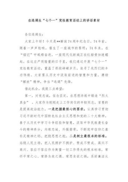 【七哥公文】2024年:在选调生“七个一”党性教育活动上的讲话素材+更多免费公文+VX:QiGeGongWen2024