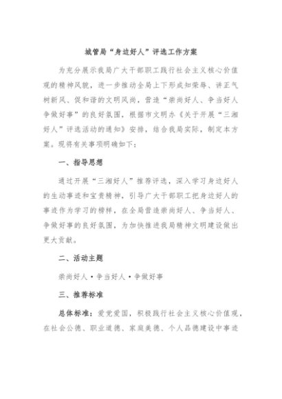 / 【七哥公文】2024年:城管局“身边好人”评选工作方案+更多免费公文+VX:QiGeGongWen2024