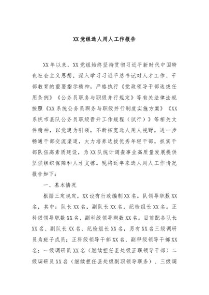 / 【七哥公文】2024年:XX党组选人用人工作报告+更多免费公文+VX:QiGeGongWen2024