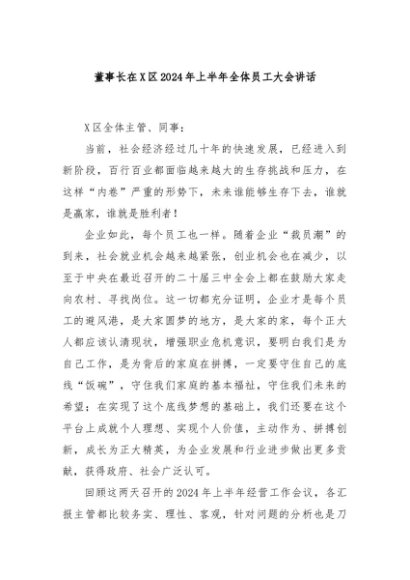/ 【七哥公文】2024年:董事长在X区2024年上半年全体员工大会讲话+更多免费公文+VX:QiGeGongWen2024
