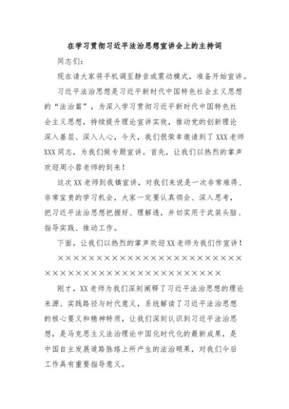 / 【七哥公文】2024年:在学习贯彻习近平法治思想宣讲会上的主持词+更多免费公文+VX:QiGeGongWen2024
