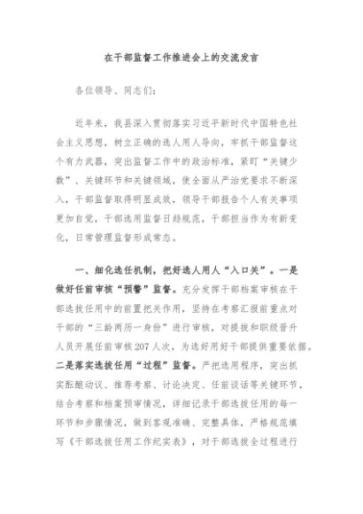 / 【七哥公文】2024年:在干部监督工作推进会上的交流发言+更多免费公文+VX:QiGeGongWen2024