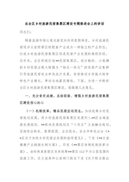 / 【七哥公文】2024年:在全区乡村旅游民宿集聚区建设专题推进会上的讲话+更多免费公文+VX:QiGeGongWen2024