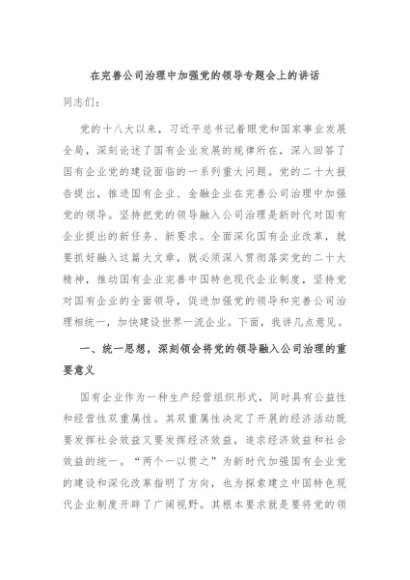 / 【七哥公文】2024年:在完善公司治理中加强党的领导专题会上的讲话+更多免费公文+VX:QiGeGongWen2024