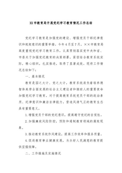 / 【七哥公文】2024年:XX市教育局开展党纪学习教育情况工作总结+更多免费公文+VX:QiGeGongWen2024