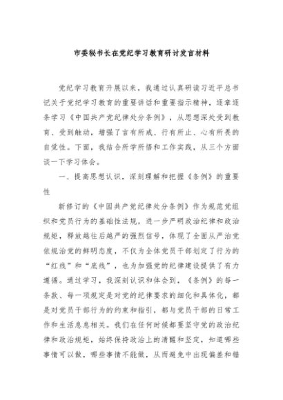 / 【七哥公文】2024年:市委秘书长在党纪学习教育研讨发言材料+更多免费公文+VX:QiGeGongWen2024