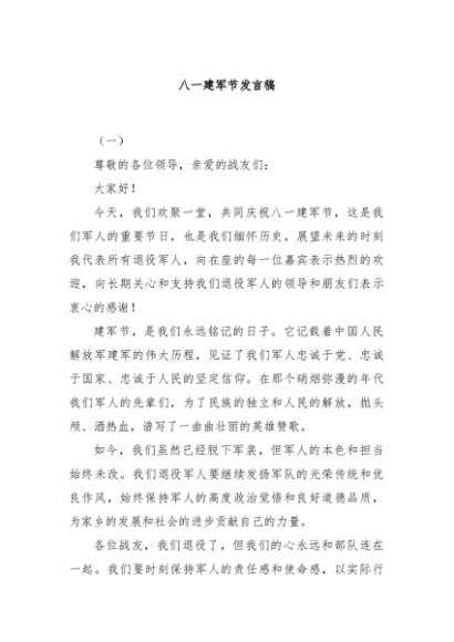 / 【七哥公文】2024年:八一建军节发言稿+更多免费公文+VX:QiGeGongWen2024