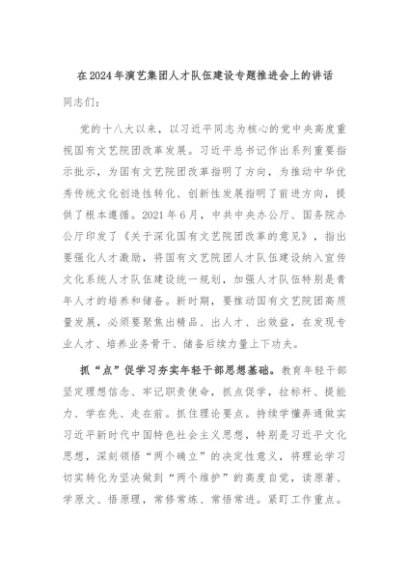 【七哥公文】2024年:在2024年演艺集团人才队伍建设专题推进会上的讲话+更多免费公文+VX:QiGeGongWen2024