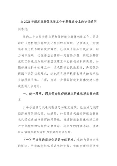 【七哥公文】2024年:在2024年新就业群体党建工作专题推进会上的讲话提纲+更多免费公文+VX:QiGeGongWen2024