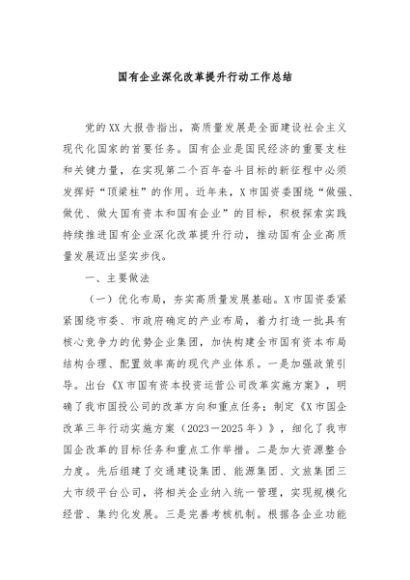 / 【七哥公文】2024年:国有企业深化改革提升行动工作总结+更多免费公文+VX:QiGeGongWen2024