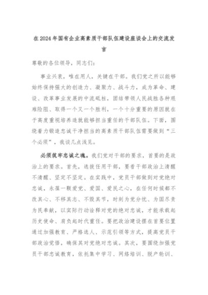 【七哥公文】2024年:在2024年国有企业高素质干部队伍建设座谈会上的交流发言+更多免费公文+VX:QiGeGongWen2024